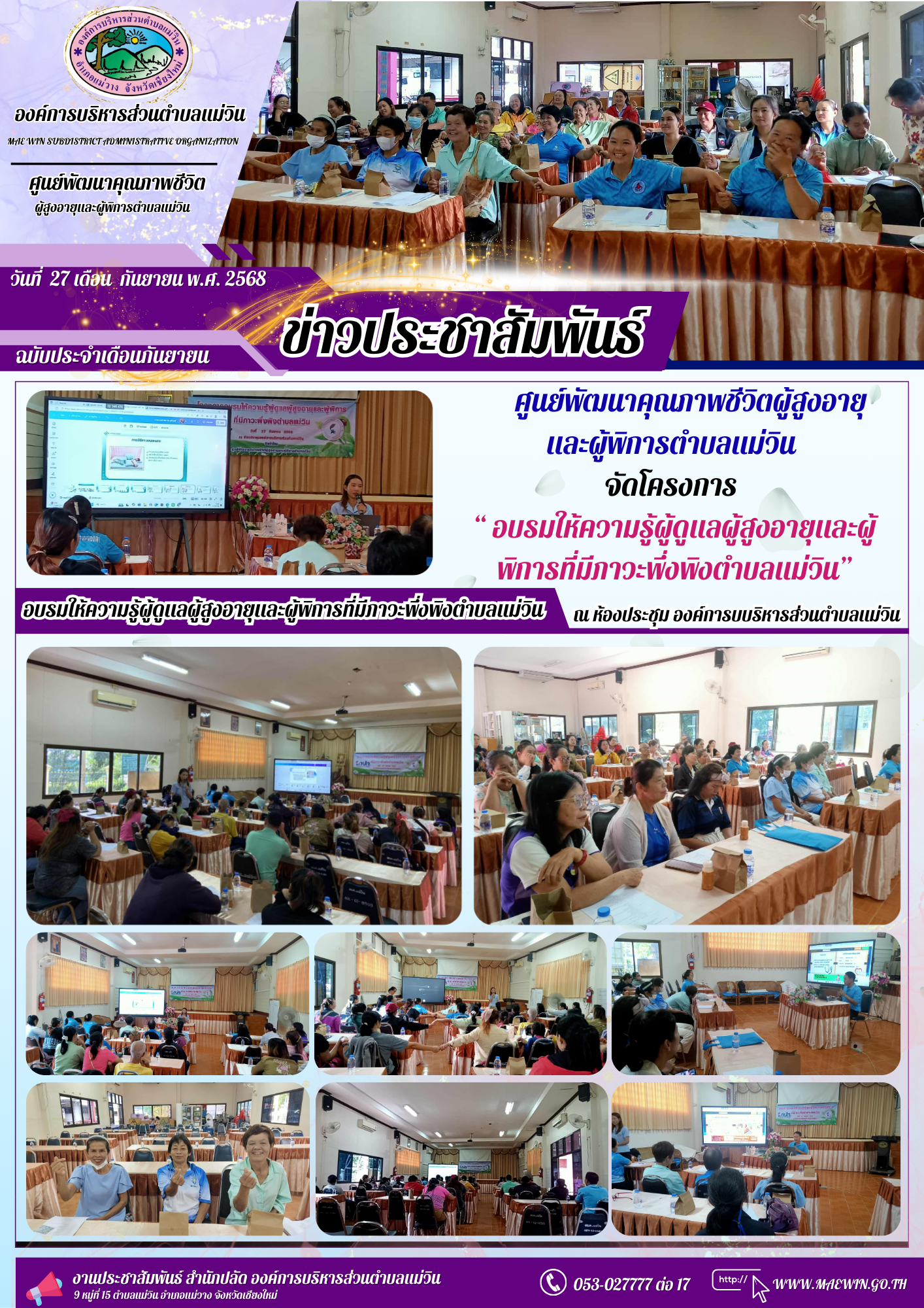 เมื่อวันอังคาร ที่ 13 กันยายน 2559 องค์การบริหารส่วนตำบลแม่วินได้จัดทำโครงการฝึกอบรมพัฒนาศักยภาพแกนน