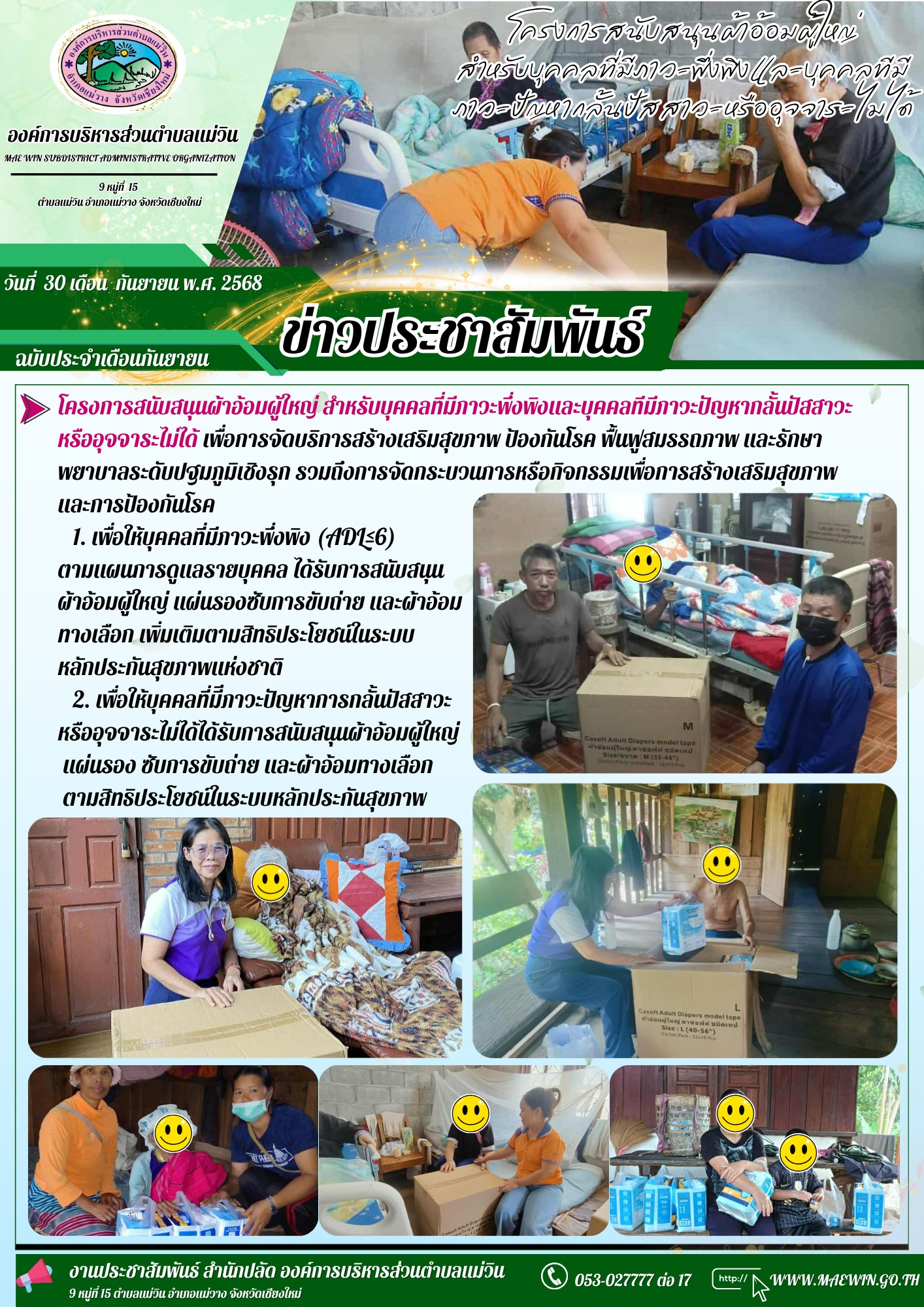 โครงการมอบผ้าอ้อมผู้ใหญ่ เเผ่นรองซับการขับถ่ายเเละผ้าอ้อมทางเลือก