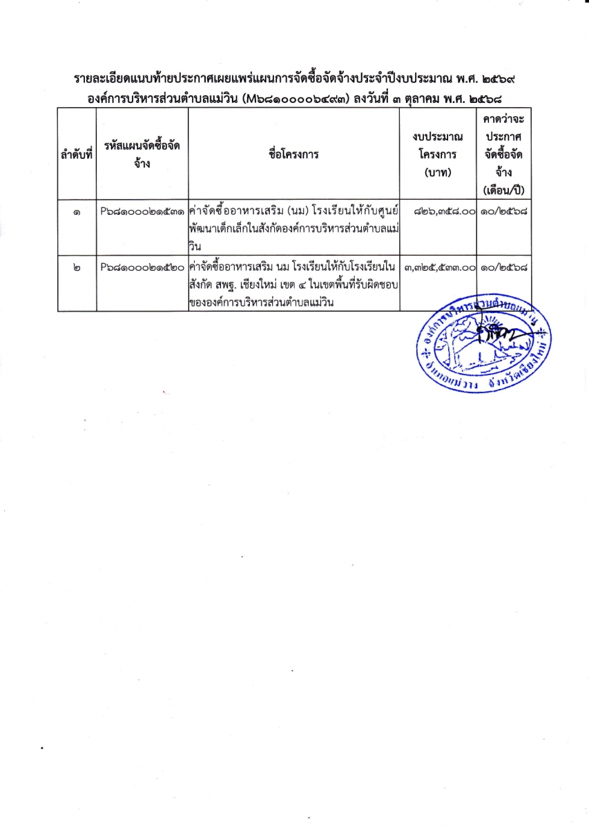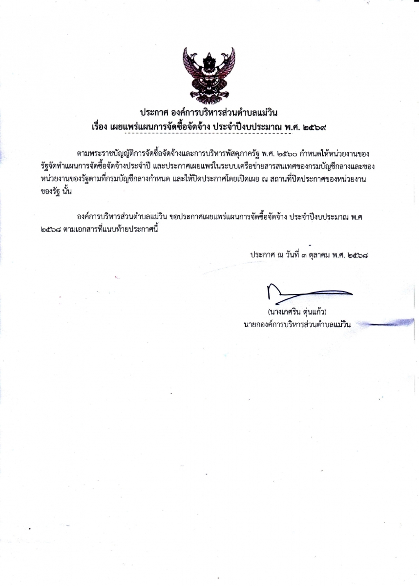 แผนการจัดซื้อจัดจ้าง ประจำปีงบประมาณ 2569